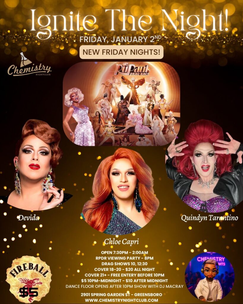๐ Drag Shows: Join us at 10 PM and 12:30 AM, hosted by the fabulous Davida, with stunning performances by Chloe Capri and Quindyn Tarantino!